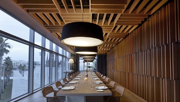 這種規劃采用園林的自由組合的特點,將室內的某一一些聯系歇息區解決成小橋流水,而別的各一些聯系園林的漏窗與隔扇,將靠窗或貼墻的一些進行比較通透的二次隔開,區別出主要就餐區與多個非必須就餐區,以保證一些就餐區具有必然的緊密性。