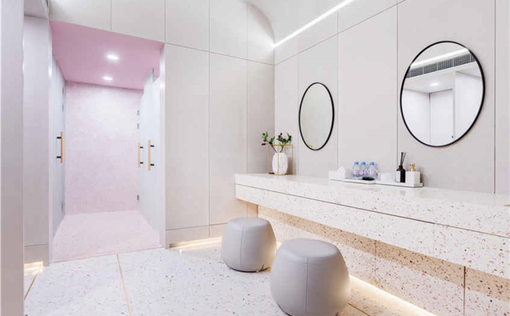 設計師考慮到SPA是指利用水資源結合沐浴、按摩、涂抹保養品和香熏來促進新陳代謝,滿足人體視覺、味覺、觸覺、嗅覺和思考達到一種身心暢快的享受,所以其裝修設計必須排水非常好,而且裝飾的時候不僅要考慮到實際的享受,視覺上的享受也是非常重要的。