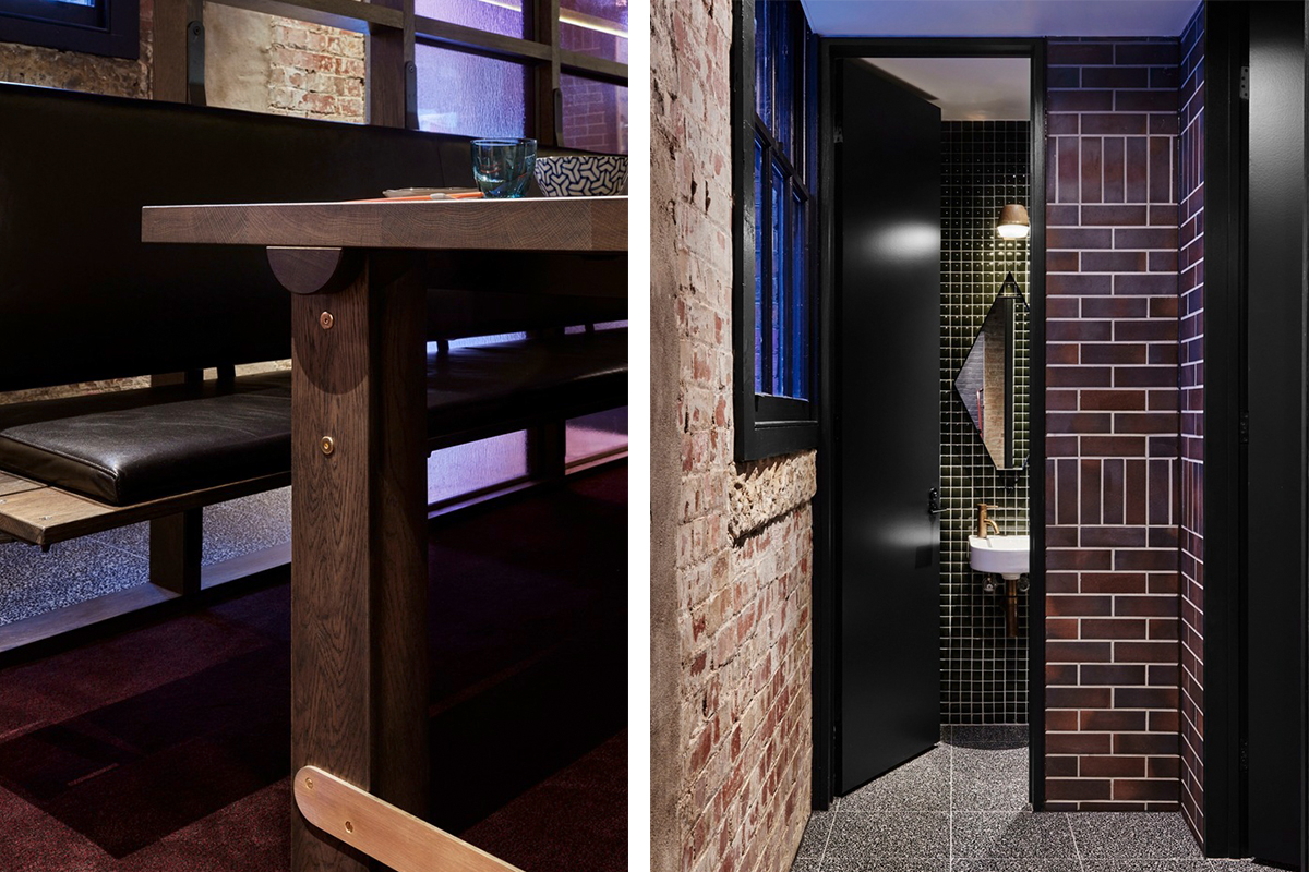 原有的建筑物被剝離露出堅固的木桁架和原始磚砌,現有的木屋天花板結構保持完整,木地板也被保留,修理并染色,以配合其他使用的表面處理。懸臂式的宴會座椅為小空間增添了輕盈感,中式的木材和玻璃隔斷作為房間分隔,為主口附近提供了實用的解決方案。