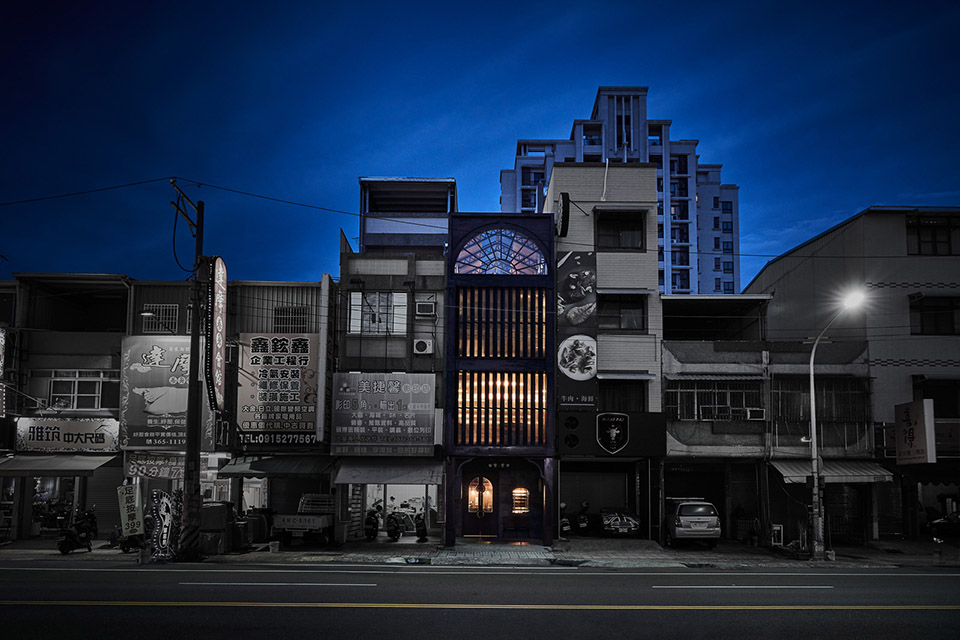 建筑物正面使用大量經(jīng)時間慢慢銹化后而達到時代斑駁感的原鐵材質(zhì)與復古精雕玻璃,兩者比例平衡配置下使視覺上不至于太過沉重同時又能保有特殊材料所帶出強烈的風格特色,穿透性材料的運用更能引入大片自然光灑進房子深處、大幅提升采光機能。