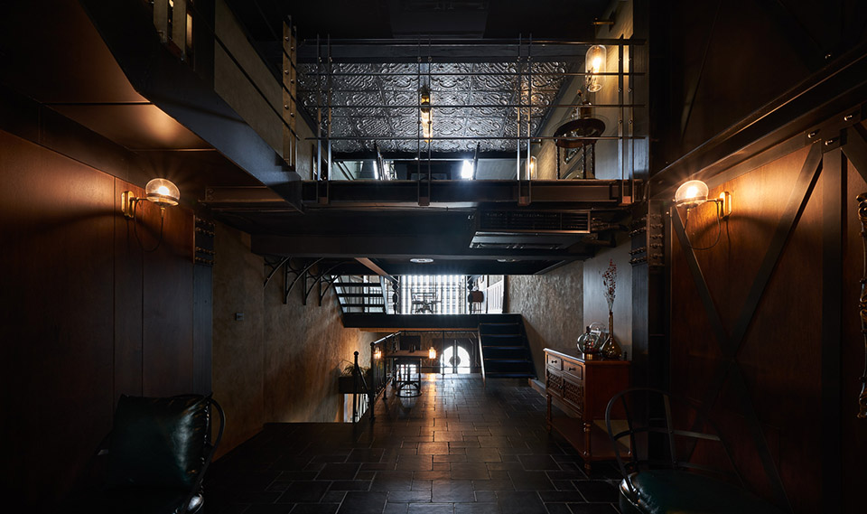 空間主材:拋光混凝土地板、黃銅扶手、煙熏膠合板、老式地磚、法國老式鐵窗格柵、浮雕鋁板、黑窯地磚、仿石涂層、原始外觀鐵板、復古花紋玻璃、復古鏡面