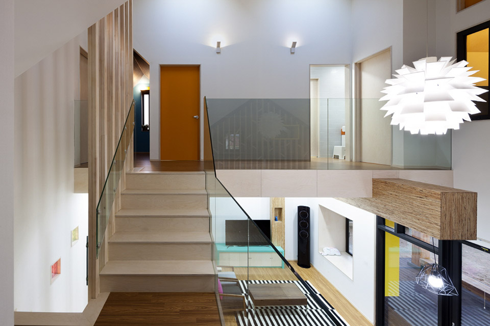兒童房,衛生間,主臥室和工作室位于二樓。工作室面對院子,一邊讓家長在工作室也能注意到在外玩耍的孩子。整個房屋以孩子為核心進行設計,創造出有趣關聯還有互動的室內外空間。