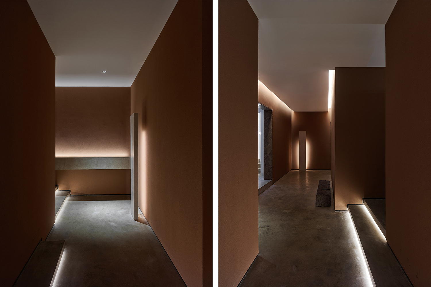 娛樂空間畫風(fēng)突變,空間中的赤粉色,也是熱鬧中的靜寂。它悄然融入了灰與白之間,游移在光與影之間,在高雅中摻雜著曖昧,曖昧中摻雜著全然的放松,樸素靜美,耐人尋味。另外,空間中偶爾有經(jīng)典收藏出鏡,諸如紅藍(lán)椅。藏品許多,卻沒有盡數(shù)堆砌,少量即可悅?cè)藧偧骸?br />