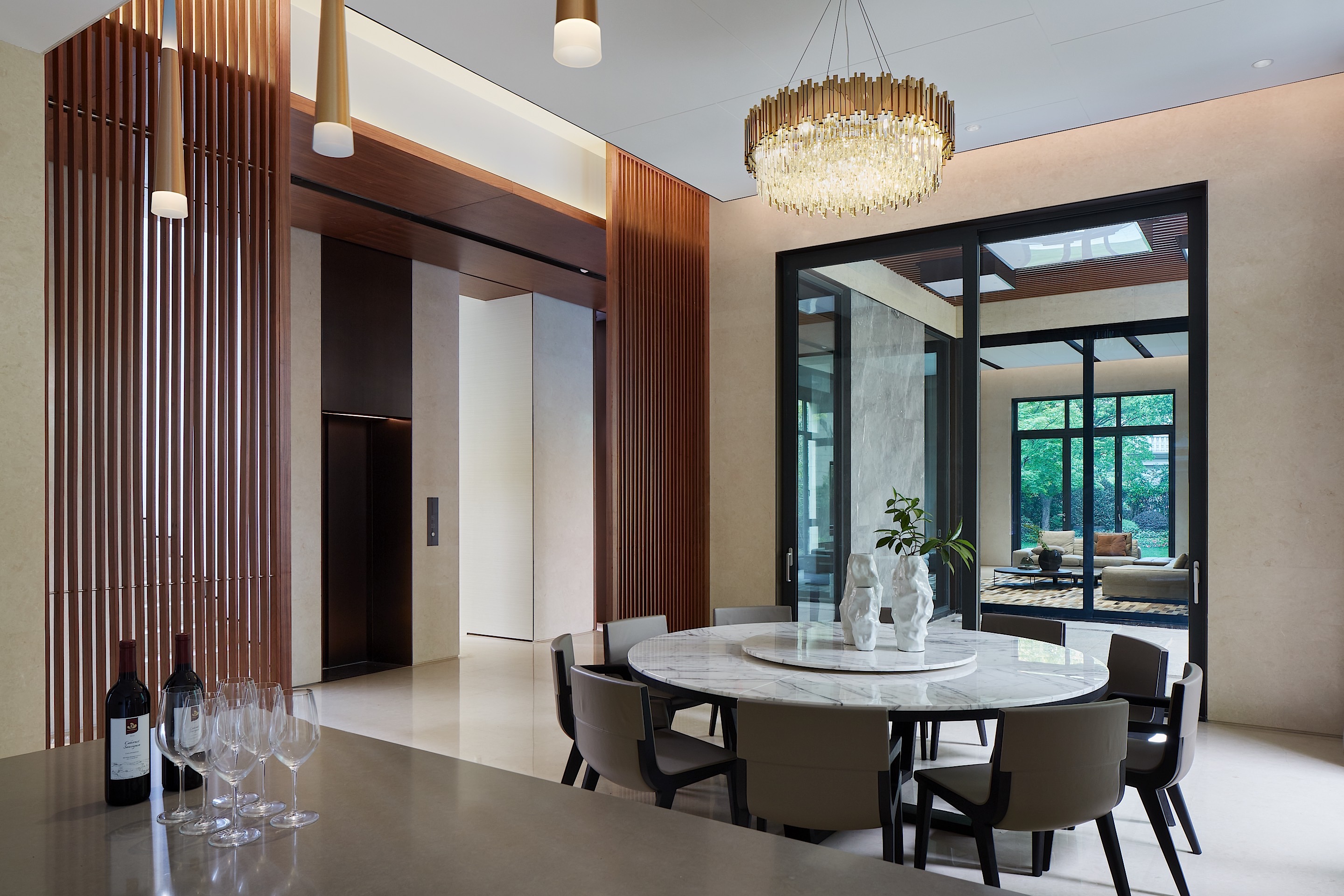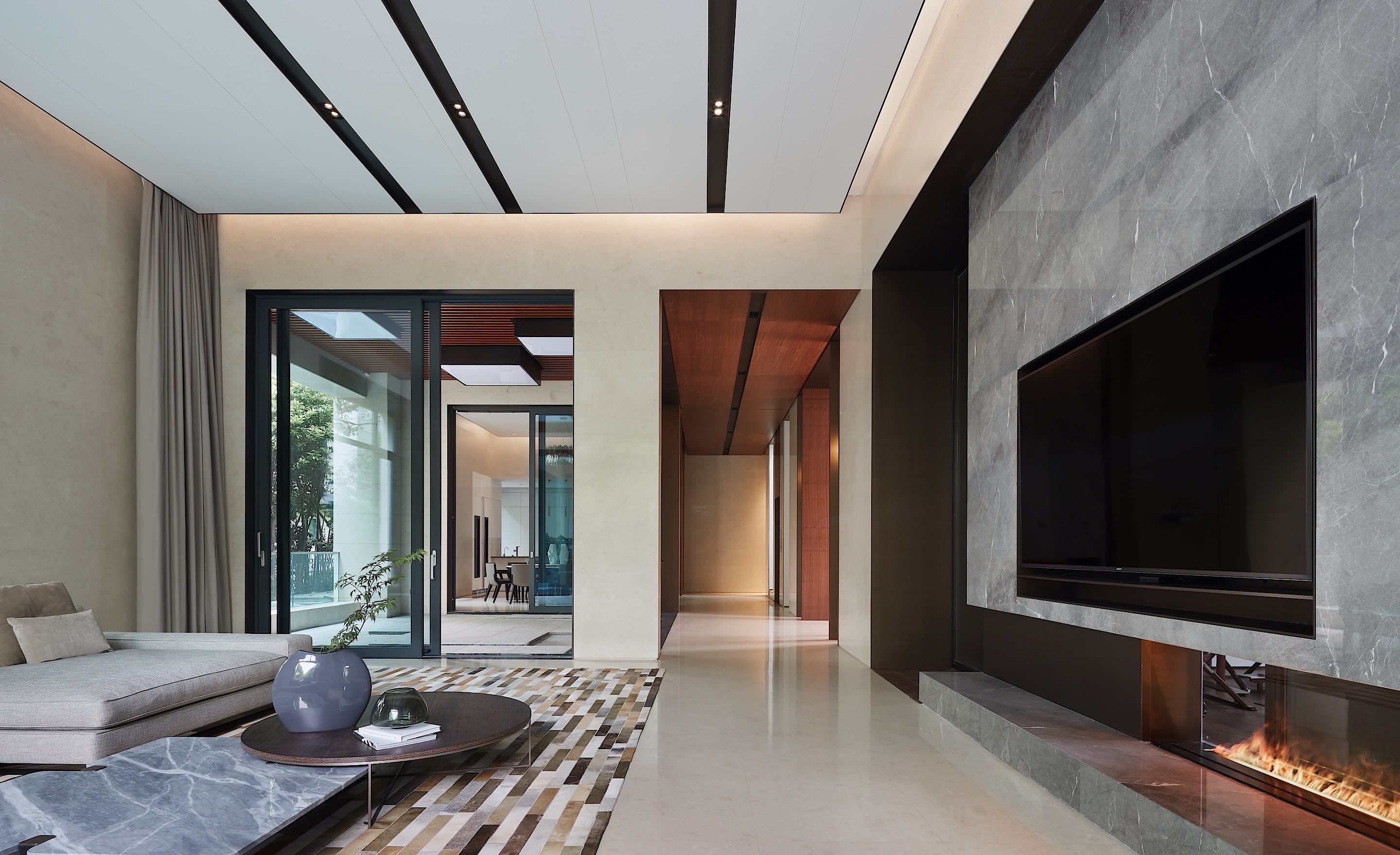 設計師強調:“我們試圖讓居者與環境對話,讓建筑與景觀融合,讓室內外自然延伸,淡化各功能區界線,同時將空間的尺度感、材料的品質感與設計的藝術感合而為一,打造更簡潔更現代更國際化的舒適居所。這背后集結了我們對美學的感知,對設計的思索,也融合了業主對家的期待,對生活的暢想。”