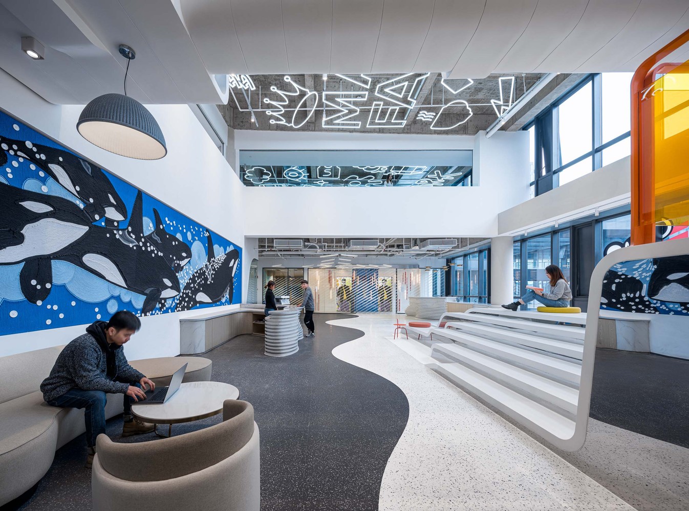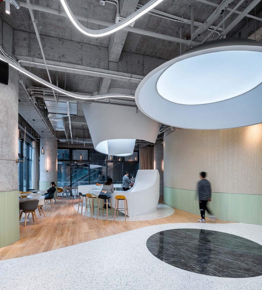 如同城市生態(tài),辦公空間亦成為交流互動的樞紐中心,移除大多數(shù)中國典型辦公室的正式和過時的模式特征,設(shè)計師創(chuàng)造了可滿足當(dāng)代員工的需求的現(xiàn)代、創(chuàng)新和舒適的工作空間。這個開放的空間使人們可以在不斷進(jìn)化的組織環(huán)境中擔(dān)當(dāng)多種角色,為員工提供更多的自我管理權(quán)限,并方便員工們以一種更適合他們的工作方式來完成工作。