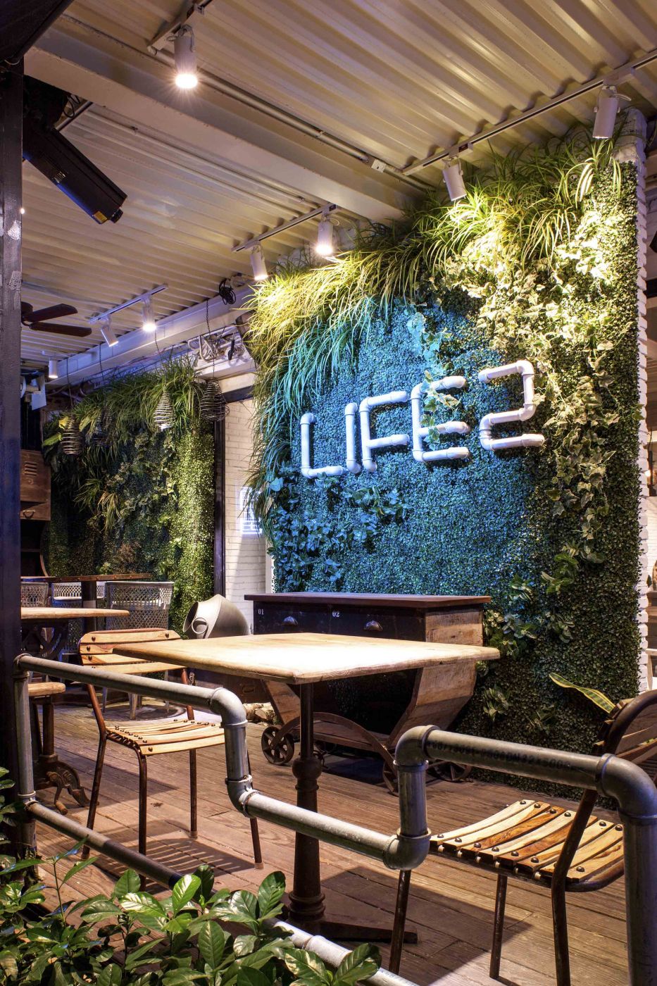 LIFE2由Living、Innovation、Fitness、Earth、2econd五大文化主題組成。LIFE2旨在把生活、創(chuàng)意、健康、環(huán)保、再生融合在一起,把餐廳空間裝修設計打造一個全新的文化概念餐廳。