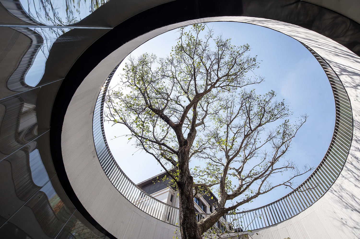 我們撇除過(guò)份具體的功能框架,希望以設(shè)計(jì)創(chuàng)造一處開啟對(duì)話的場(chǎng)域。因都市化疏離的個(gè)體,能尋回圍繞著樹相聚、閑話家常的群體凝聚引力?!副阋€家,設(shè)灑殺雞作食,村中聞?dòng)写巳?,咸?lái)問(wèn)訊?!固一ㄔ蠢锶藗兤綄?shí)相待的性情、聚落和諧氣氛,盼能在此重現(xiàn)而成為新社區(qū)珍貴的生活底蘊(yùn)。無(wú)論外界如何喧鬧、城市怎么蛻變,尋到秘境的入口潛行湖底,總能從異于尋常的視角找到寧?kù)o。