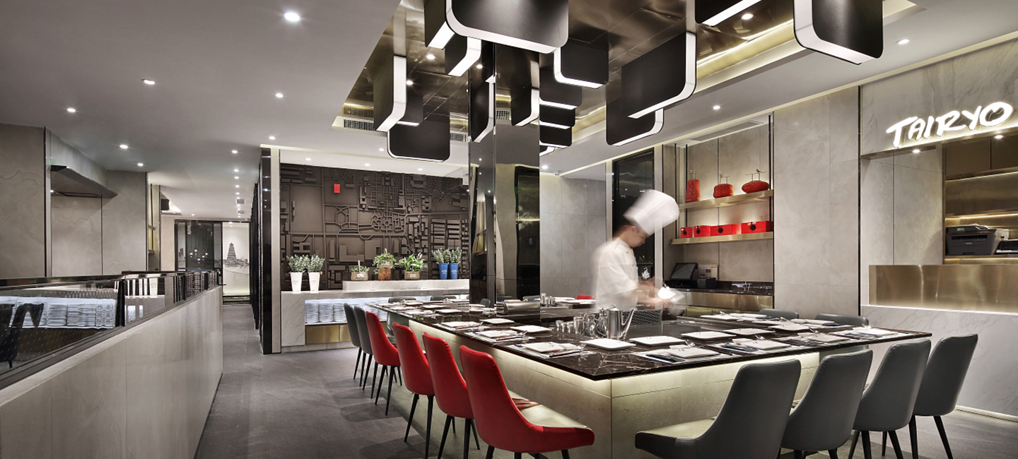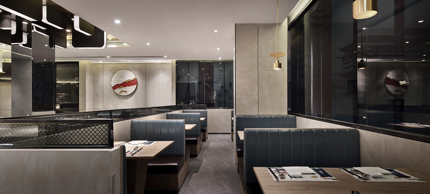 每一座城,自有一種歷史沉淀的氣質。貝帝設計,洞悉進入每一個城市文化語境的密碼。關中自古帝王都,意氣風發(fā)長安城。歷朝歷代的西安,可謂是“萬國衣冠拜冕旒”的國際大都會。十三朝古都底蘊濃墨重彩,千年文脈宛如滄海游龍,歷經(jīng)滔滔歲月的洗禮,呈現(xiàn)包容海納、氣象萬千的文化魄力。大漁鐵板燒項目以西安地域文化為背景考量,承韻長安古都,接軌當代藝術,于曲江雁塔畔,誠獻一處身心飽食之地,與大西安共饗一場活色生香的盛宴。