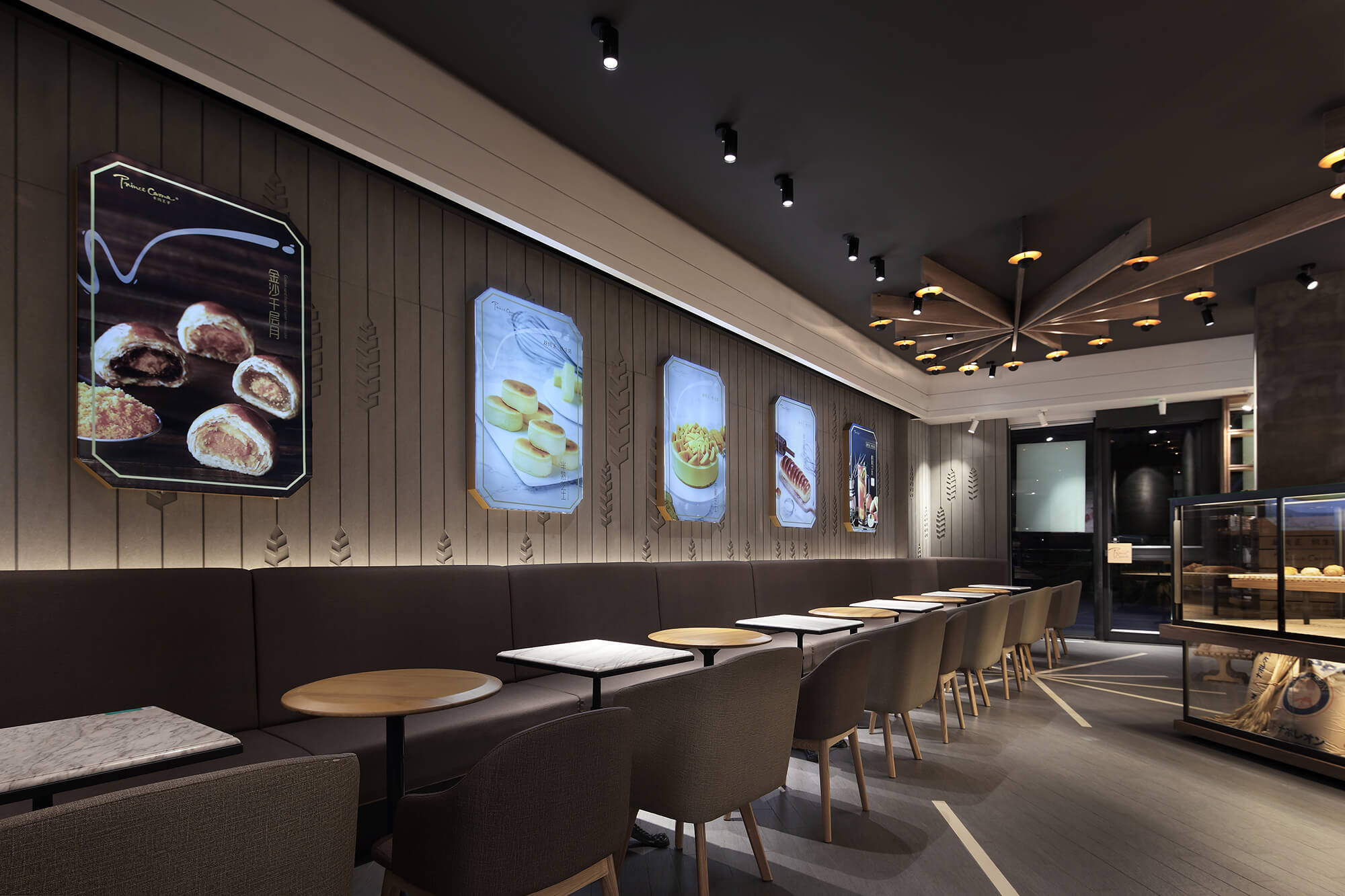 設計師以卡瑪王子品牌形象升級為契機,將設計元素聚焦于產品本身以及產品引申而來的符號,在休閑餐飲空間設計中,設計師靈活解構面包的前世今生,將制作面包的原材料“小麥” 引入空間,發揮想象力將“麥穗”與“麥稈”的形象多樣化、豐富化、通過拆分整體、提煉細節,真正做到一麥多用,整個空間充滿了產品的各種元素,重新詮釋卡瑪王子的天然概念。