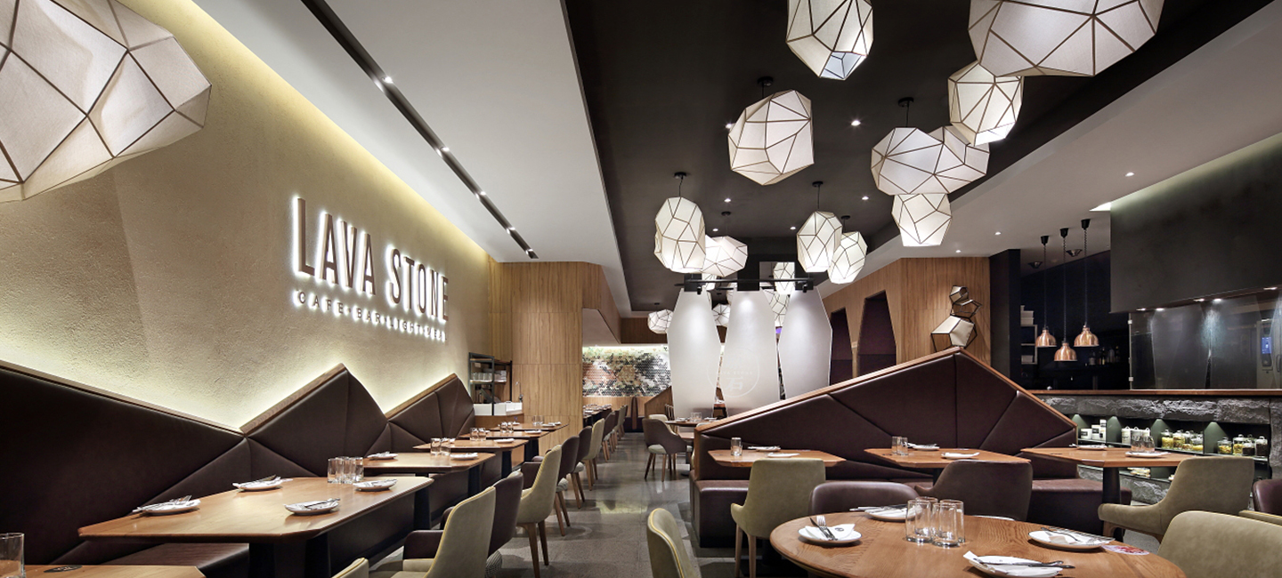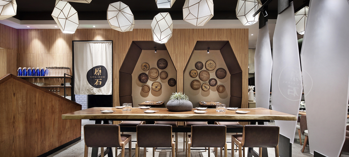 石頭,玲瓏有致,靜美不言,交融著自然與時間賦予的靈性。原石餐廳,英文名“Lava Stone” , 自帶溫暖敦厚的氣質。貝帝團隊基于對原石品牌的思考,從石頭元素中獲取靈感,將大自然最靜雅的饋贈融入空間美學,賦予原石餐廳鮮明的個性和自然、人文的藝術氣息。