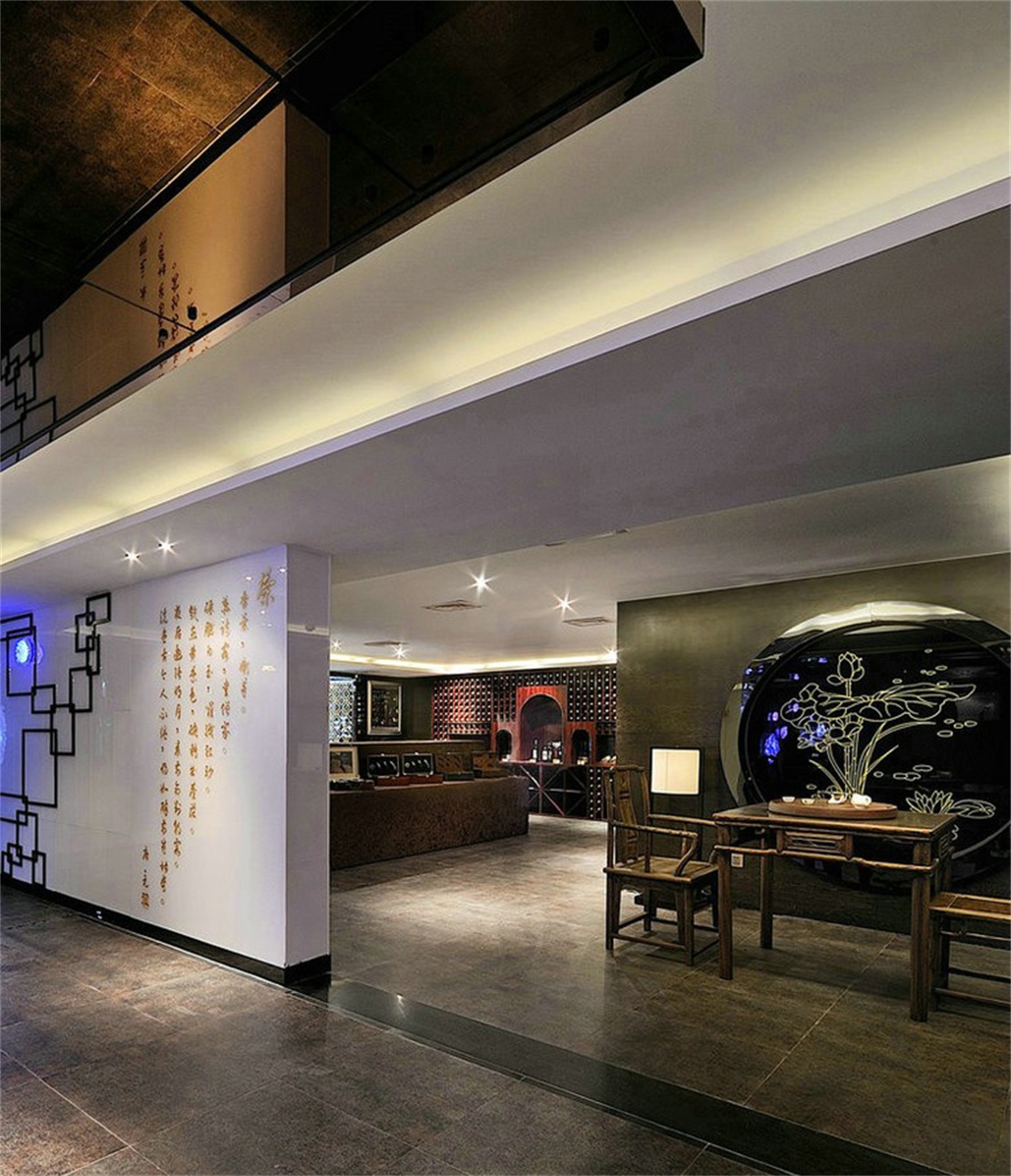 本案是以茶酒飲品為主題的餐廳空間,以現(xiàn)代新中式風(fēng)格作為主題,大朗具有中國(guó)古典韻味的裝飾材料應(yīng)用在整個(gè)空間中,并在其中加入了時(shí)尚的現(xiàn)代元素,既體現(xiàn)了中式裝修風(fēng)格的韻味和文化,也令這個(gè)一風(fēng)格更加適宜于現(xiàn)代人的生活習(xí)性與審美。