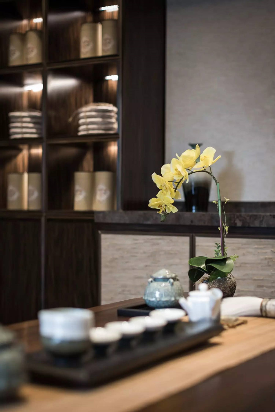 山水的抽象意念,在對比中體現出細節的推敲和尺度的精準把控,既和室外的風景遙相呼應,又為客人帶來舒適與尊貴之體驗。