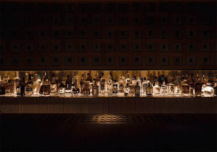 隱蔽的入口幾乎被街道的嘈雜淹沒,一個極易忽略的黑洞終于說出了秘密。當客人費盡心思終于找到入口,進入一個昏暗的、不精致的樓道,小心翼翼行至前臺時才長舒一口氣:原來酒吧真的在這里啊!核對預訂信息,在前臺指引下打開秘密酒吧真正的入口,旅程才剛剛開始。穿過前廳,一個12米長的吧臺躍至眼前,占滿了所有視線。然后慢慢地你將發現,酒保身后那面貼滿甲殼蟲、柚木編制的墻體一直貫穿到天花板,直至一道柔和的光將其和吧臺底部的光影融為一體,整個長吧臺如島嶼一般漂浮在昏暗悠長的空間中,神秘、魔幻,外面的世界瞬間和你無關了。