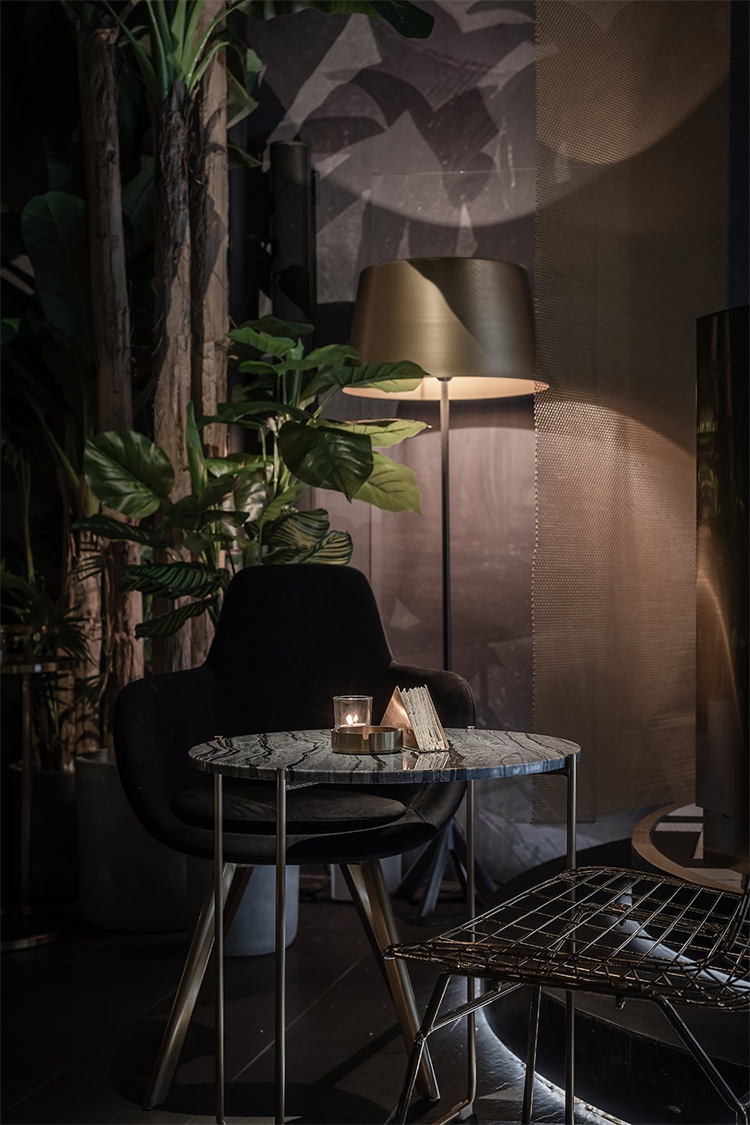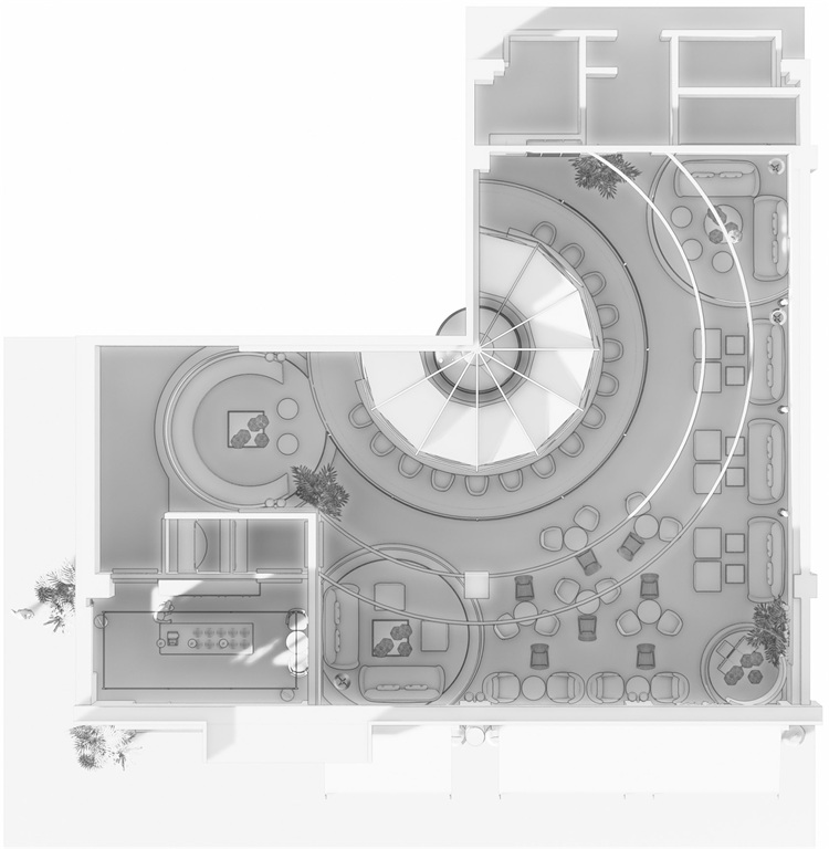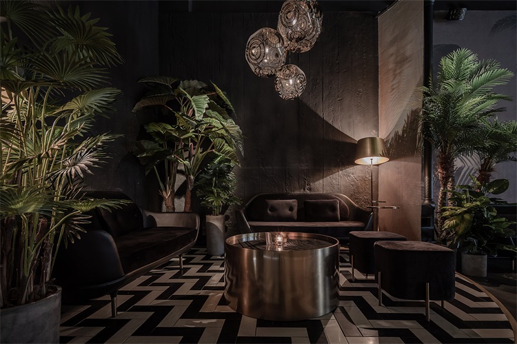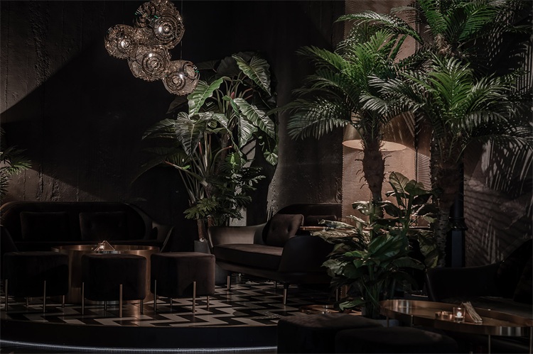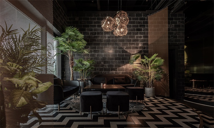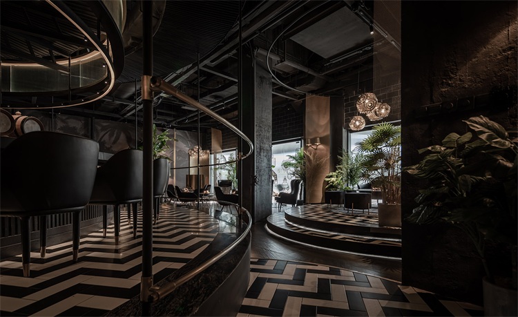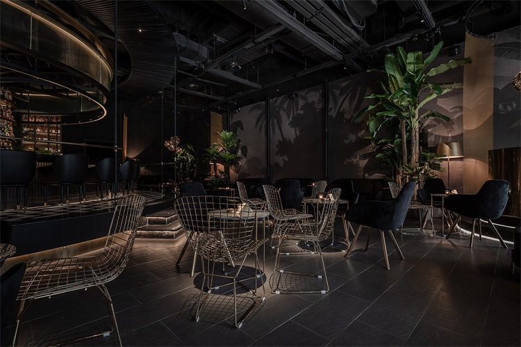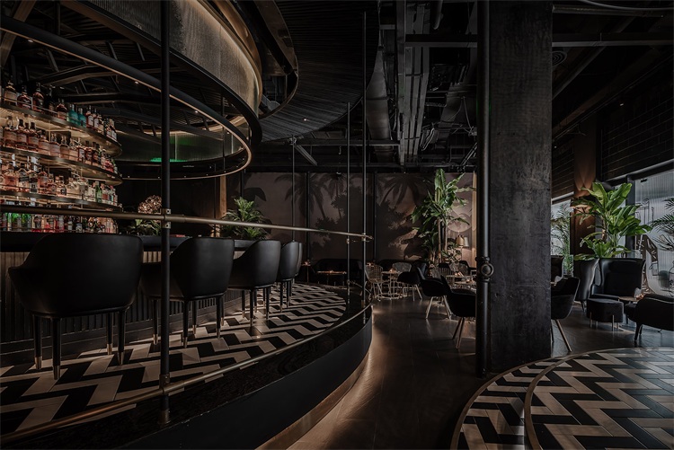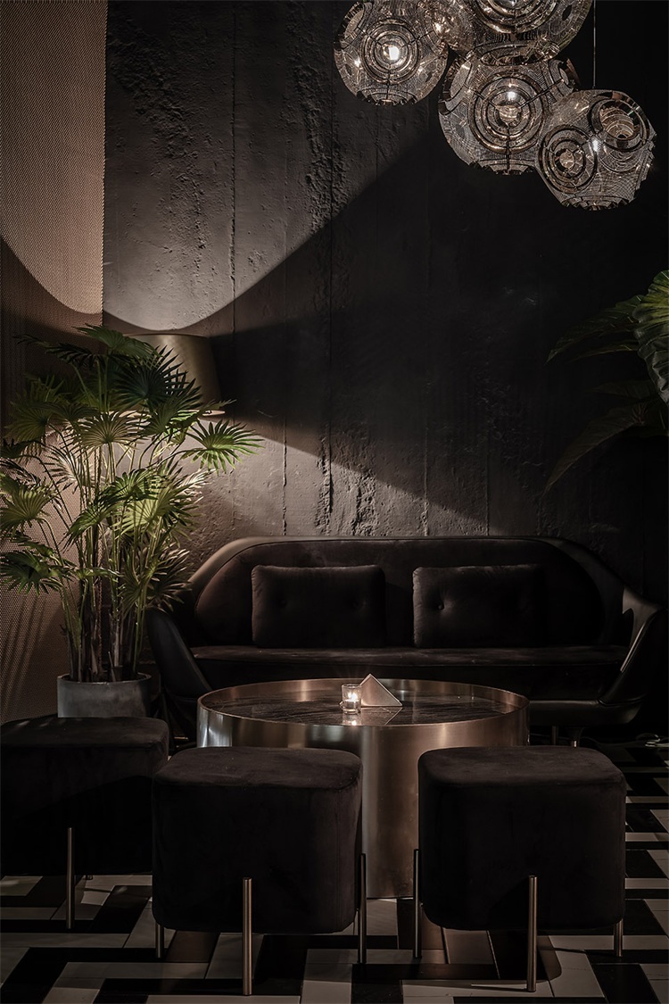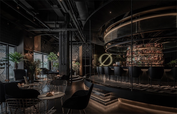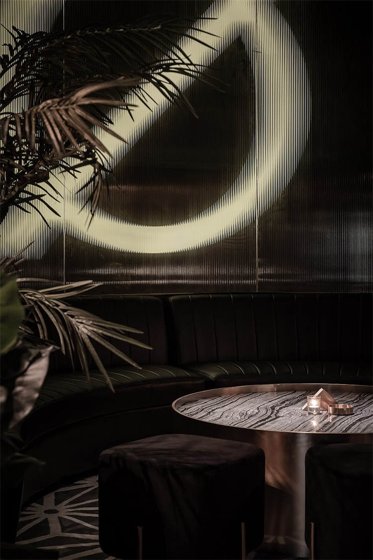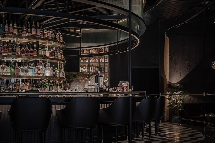 圓形的吧臺為整個空間的核心區域,這個形狀可以更好的讓全場的座位都感受到吧臺區域的氛圍,吧臺設計以旋轉木馬為概念,通過燈光及鏡面材質的運用,將整個空間的客人拉到華麗自由的氛圍當中。圍繞著吧臺的通道讓吧臺、酒墻、沙發區緊密貼合,人與人的距離在空間的壓縮中產生了期待已久的溫度。