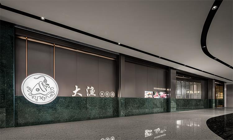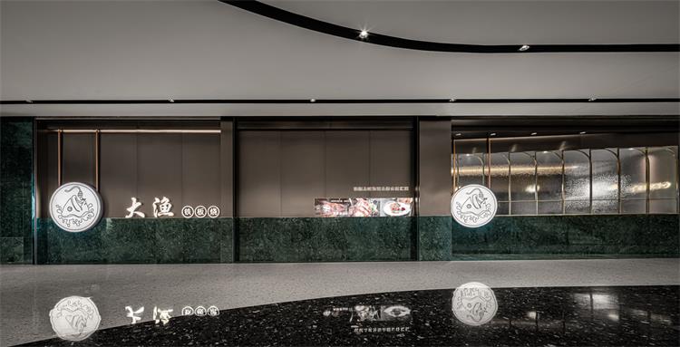 本案餐廳位于武漢江宸天街,是繼深圳中心城大漁后的又一次新店小升級。本案以“乘帆破浪·大海捕魚·滿載而歸”的故事為空間設(shè)計(jì)主線;從場景中提取“弧形海浪、帆船之形、垂釣魚竿”等元素解構(gòu)重組符號,以現(xiàn)代手法打造一個(gè)時(shí)尚年輕、輕奢簡約的沉浸式體驗(yàn)空間,為顧客提供愉悅的用餐體驗(yàn)。