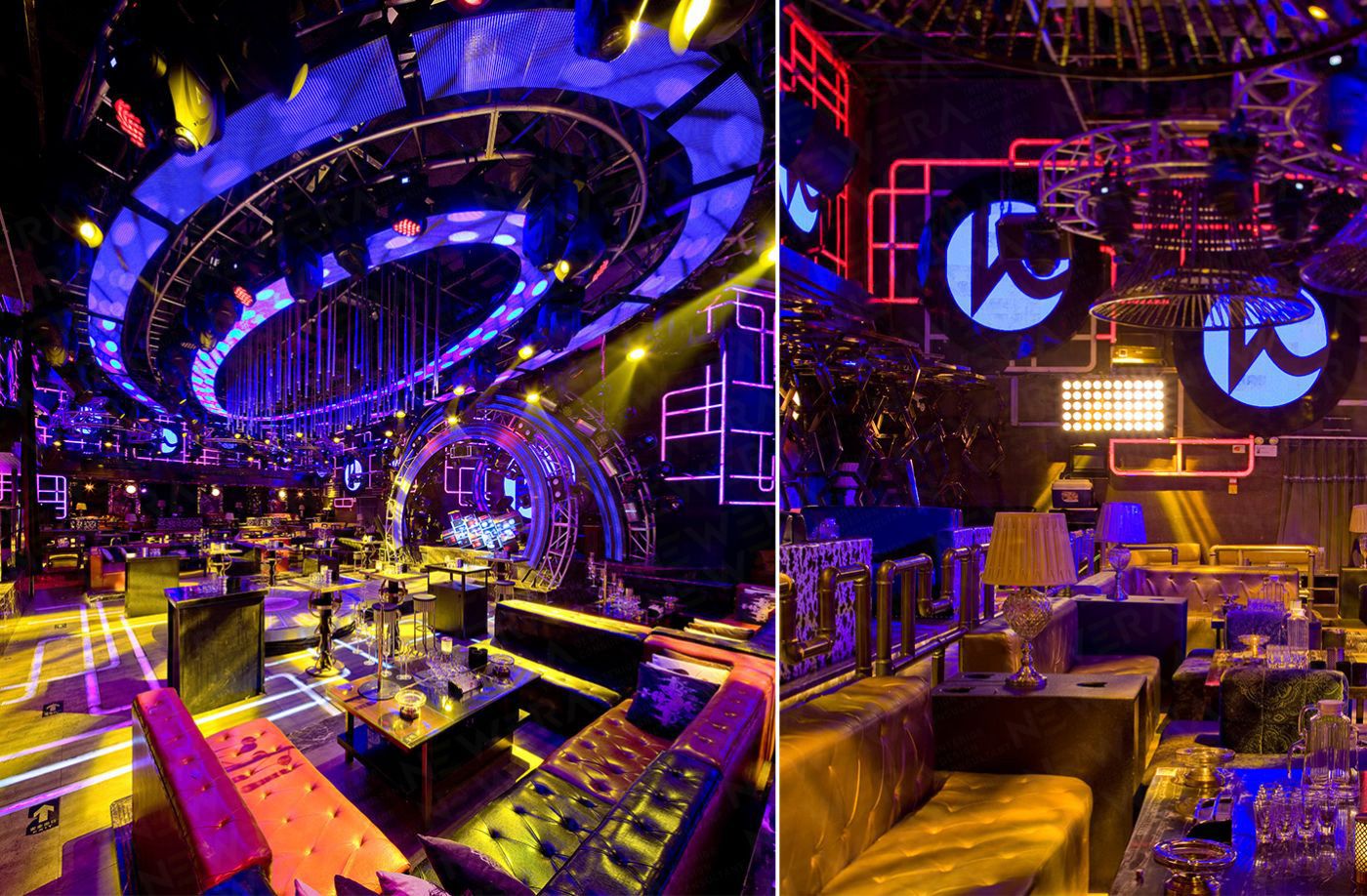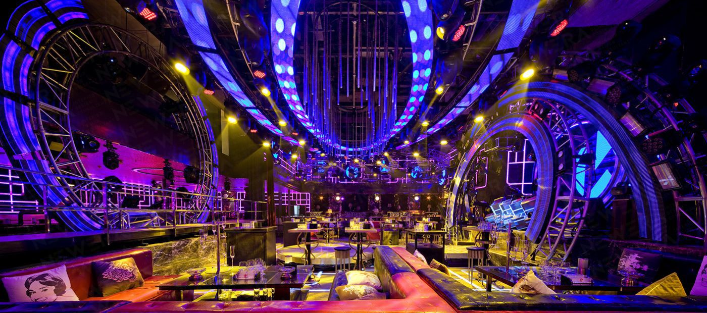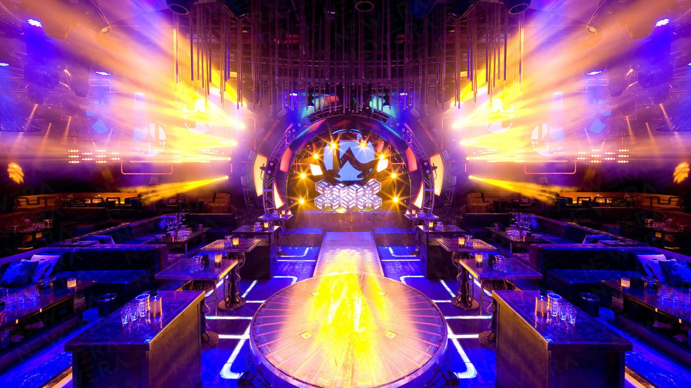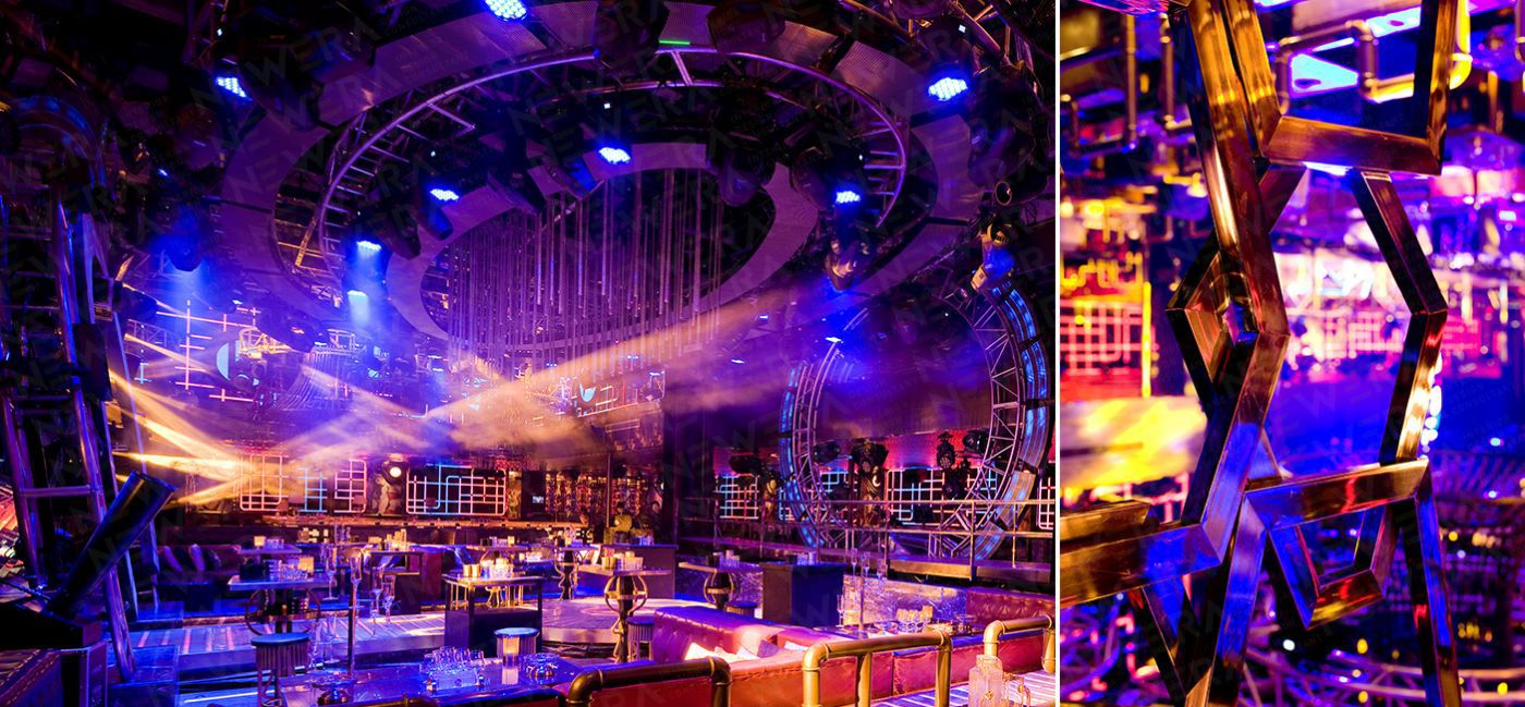包圍式舞臺設計,配備美國ADJ燈光配合第四代旋轉燈光控制系統,DGX科技P4級異形Led屏幕陣列,在傳動中帶給您時刻驚喜的動感享受。切身體會舞臺從天而降的驚喜。強烈視覺沖擊力的線條和充滿激情的色彩加上迷幻陸離的燈光設計,讓設計師嫻熟的設計思想和手法穿梭彌漫游弋在整個醉夢空間。