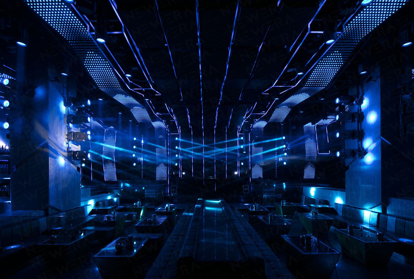 在具體設計階段,設計師選擇新立體主義風格,打破次元,從造型、燈光、視覺體驗上營造未來感。從酒吧外觀、玄關處以及酒吧主體區域,都能看到錯落的造型,輔以冷色調燈光的修飾和搭配,讓人有種從現實世界驟入虛擬空見的錯覺。其中,以折疊光帶為設計元素的外立面是點睛之筆,它能迅速抓住顧客的眼球,把人帶入這個亦真亦幻的空間。為了讓各個空間有區隔又不失整體性,設計師以不同空間體量大小變化來豐富酒吧整體氛圍,比如應用了中心氣氛卡座、半開放式水吧等。