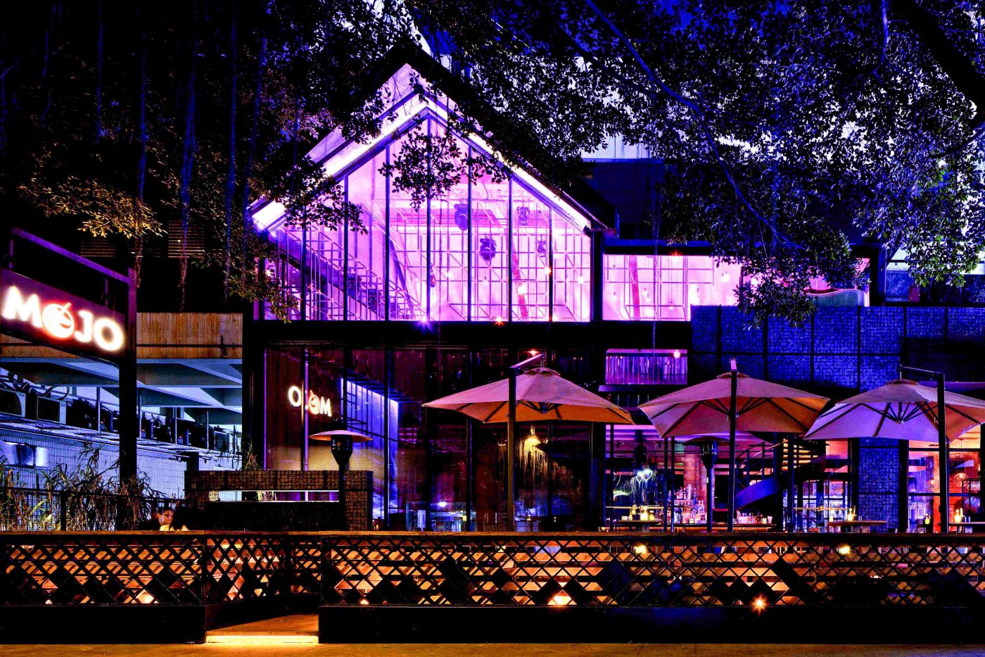 在布局上,設計師淡化了室內外的界限,軟裝燈飾也是Mojo的一大特色,本著“少即是多”的原則,空間內并沒有五彩斑斕的燈光,而是在沉著的燈光中挑了幾處做效果,加上晶瑩剔透的玻璃質感燈飾,既大氣又時髦,與家具、空間氣質配合,營造出國際大牌范兒。